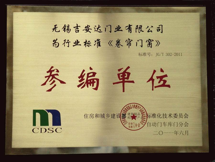 一、吉安達(dá)是建設(shè)部自動(dòng)門、車庫(kù)門標(biāo)準(zhǔn)化委員會(huì)常務(wù)委員單位,也是卷簾門窗行業(yè)標(biāo)準(zhǔn)的參編單位,足以證明我們?cè)谛袠I(yè)內(nèi)的地位;
